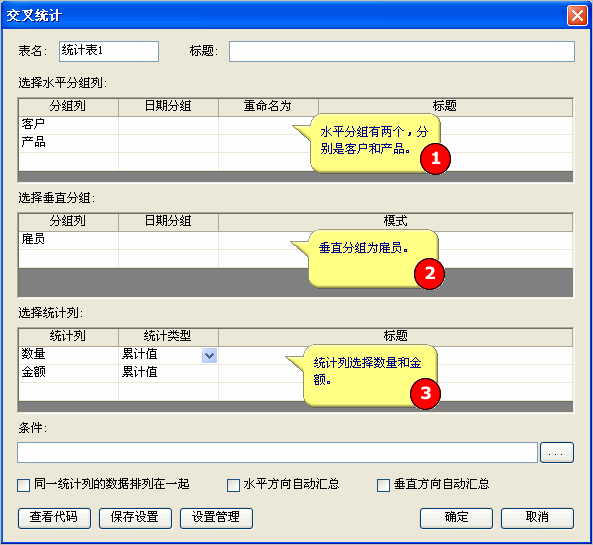 听起来很复杂,做起来其实很容易,按下图所示设置交叉统计即可: