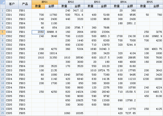 现在希望得到每个业务员和哪些客户有联系,都销售了哪些产品,销售数量和金额是多少?