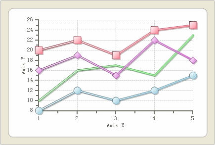 一个图表(Chart)包括几个图系(CharSeries),上图中每一条不同颜色的线就是一个图系,一个图系由多个数据点组成,而数据点的坐标位置就表示具体的数据。