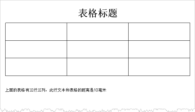 = "上面的表格有三行三列,此行文本和表格的距离是10毫米"