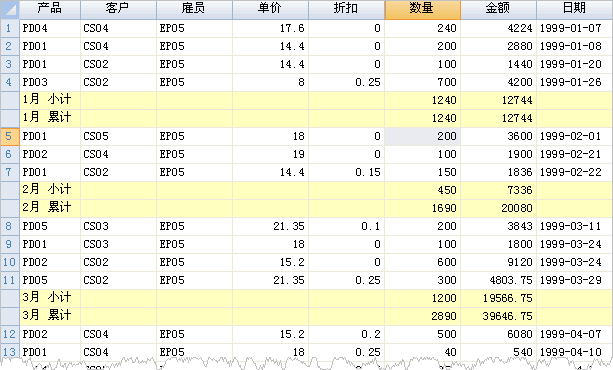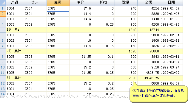 汇总模式默认是各个分组独自统计,可是有的时候,我们需要的并非是每个分组的统计结果,而是截止到每个分组时的统计结果。 例如在对订单表进行统计的时候,我们希望得到截止到每个月的时候,总的订购数量。