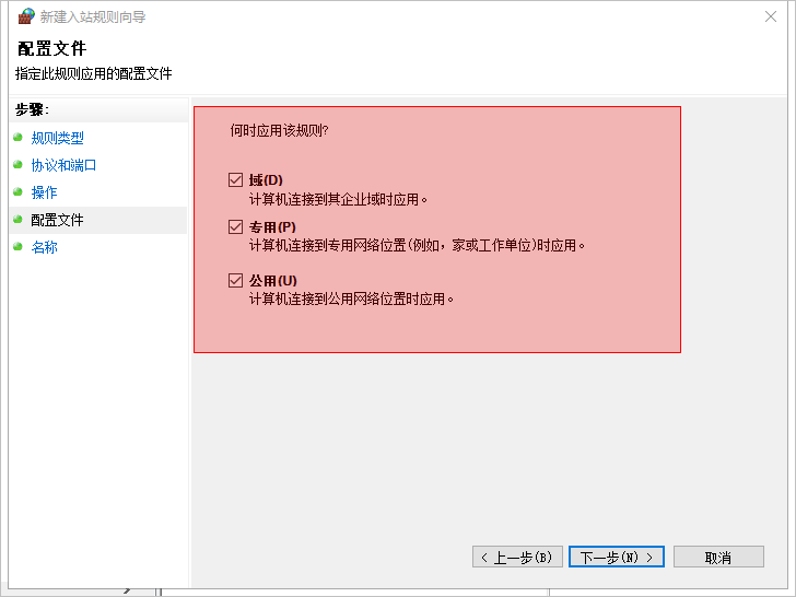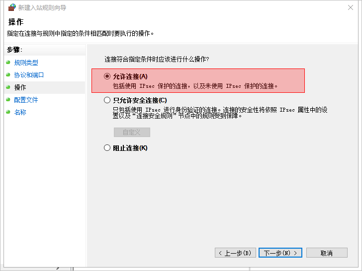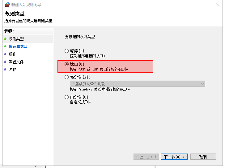 以windows 10自带的防火墙为例,新建一个入站规则的步骤为: