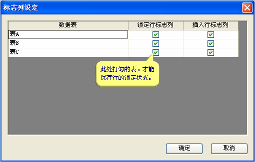 在默认情况下,只有内部表的锁定状态才能保存,而外部表在重新打开项目后,行会重新回到非锁定状态。