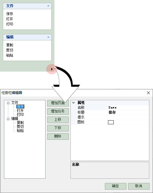 可以在任务栏编辑器增加、删除、设置页面及任务,使用很简单。