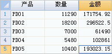 可以看到,由于金额和数量的数值范围差距太大,上述的图表不能明显看出每种产品的销售数量差别。