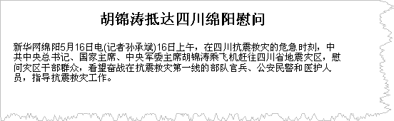 rt.Text = "胡锦涛抵达四川绵阳慰问"