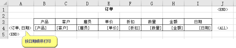 例如下图按日期顺序打印订购产品PD01的行: