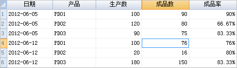 显然,生产数和成品数,可以按常规统计出来,但是成品率却没有没办法直接统计得出,只能在得到生产数和成品数的统计结果后,据此计算得出成品率,代码如下: