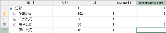 由于"sysgrdtreesort"列存储的是节点顺序,对于最终用户并无意义,所以实际使用的时候,可以将"sysgrdtreesort"列隐藏起来,或者用代码将此列从Table中移除。