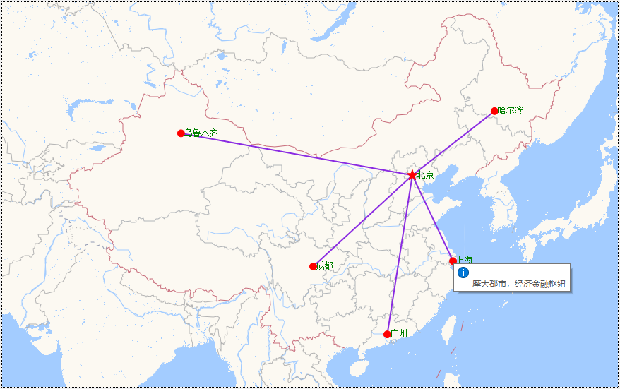 '线条至少需要用两个经纬度点,起点为北京的经纬度