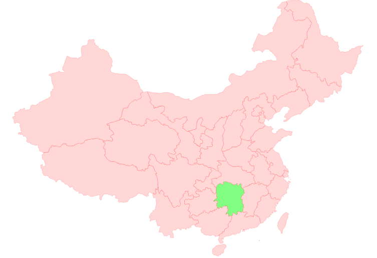 任务是利用行政区域表的经纬度数据绘制出中国的省级行政区域,其中湖南用不同的颜色显示: