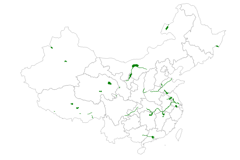 本示例内容可以参考CaseStudy目录下的文件"地图.Table"的示例二十六,该示例使用SHP文件绘制除了中国的所有湖泊: