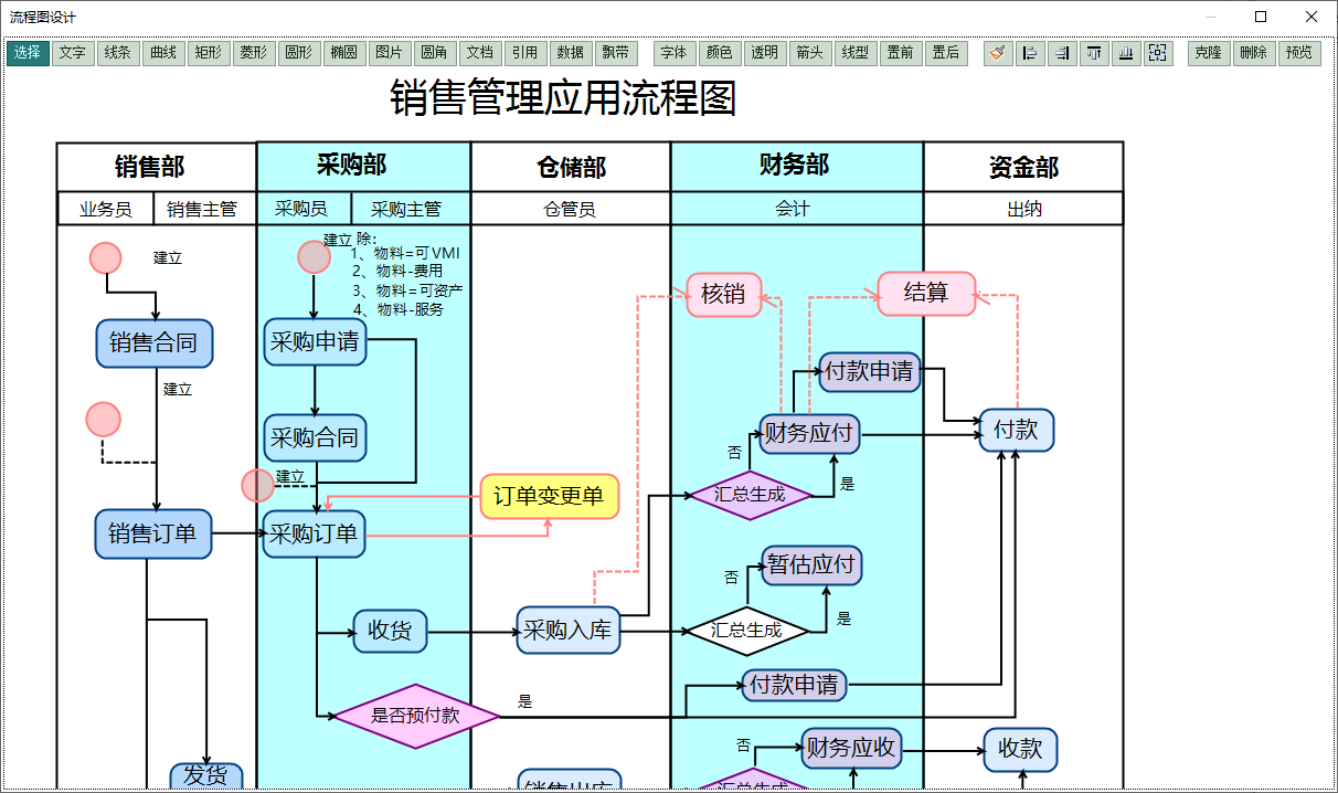 在空白区域按下鼠标后开始拖动,既可整体拖动流程图