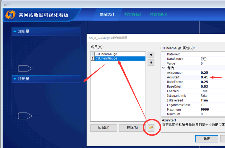 复制上面的线性仪表,然后把AxisStart设置为0.41,如图: